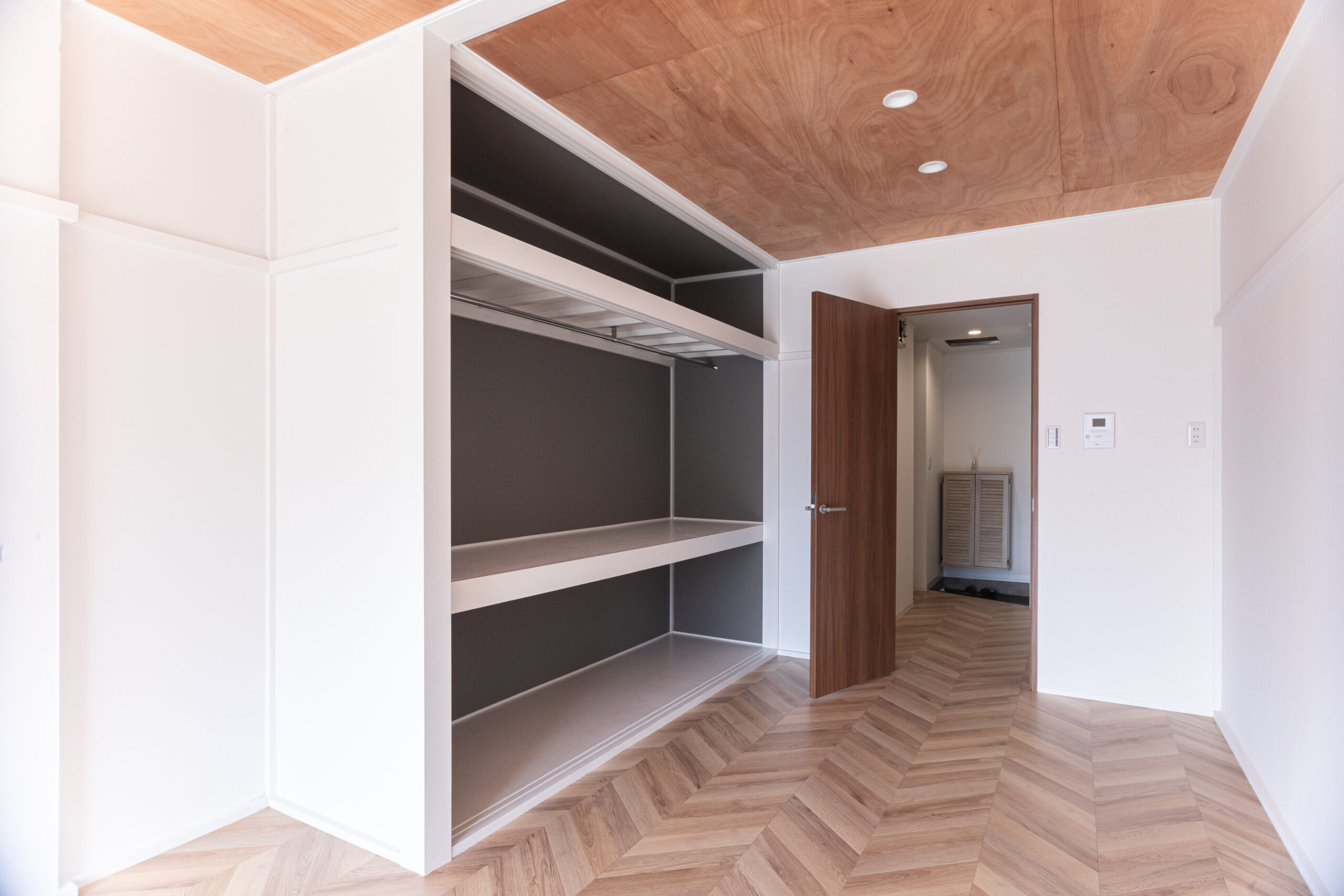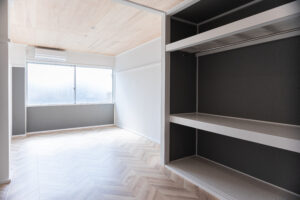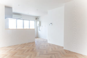 2023 Yasudamachi / Toyama,Toyama 別々に仕切られたLDKと和室を一部屋にすることで広々とした開放的なLDKが出来上がりました。 別々に仕切られたLDKと和室を一部屋にすることで広々とした開放的なLDKが出来上がりました。 キッチンは対面型のシステムキッチンに変更。 押入スペースをオープン収納へ変更。